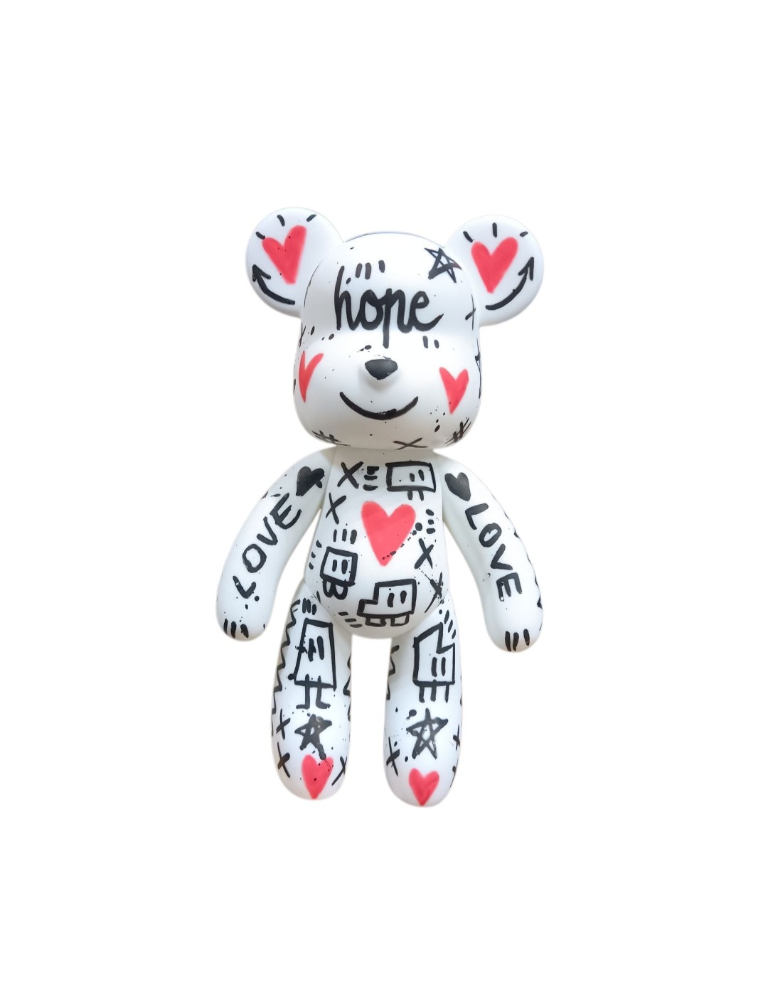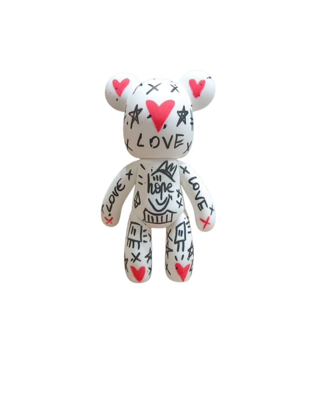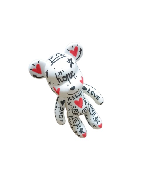 Acrylique, vernis brillant sur sculpture ourson en résine/plastique